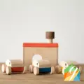 付属の車を車庫にセットし、車庫のえんとつを手のひらでポンと押します。すると、小さな木の車が勢いよく飛び出します!押し方や設置面で車の速度や距離が異なるので、楽しい発見もありそうです。距離を測って、競争してみましょう。