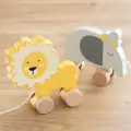 愛嬌のある顔でどもでも付いてくるベルギー生まれのプルトイ「ライオン・エレファント」。赤ちゃんがハイハイの時期には、追うことも出来ますので、姿と音で優しく刺激してあげましょう。パパやママがゆっくりと、また時には早く、リズミカルに紐を引いてくださいね。赤ちゃんの運動量がUPします。