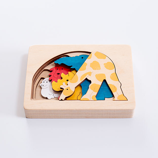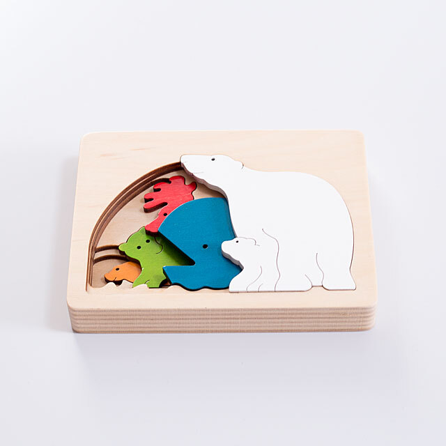 寒い地域にいる動物がモチーフの5層パズルです。ピタッとはまって気持ち良いのがパズルのが醍醐味。5層パズルは完成するとひょいっと顔を出して見えるところも愛嬌があり◎。動物のつぶらな瞳はきちんと穴が開けられており、ひと手間を惜しまず可愛らさを表現されています。通常のパズルと違って、遊び終わったら飾っておけるコンパクなところも嬉しいポイントです。
